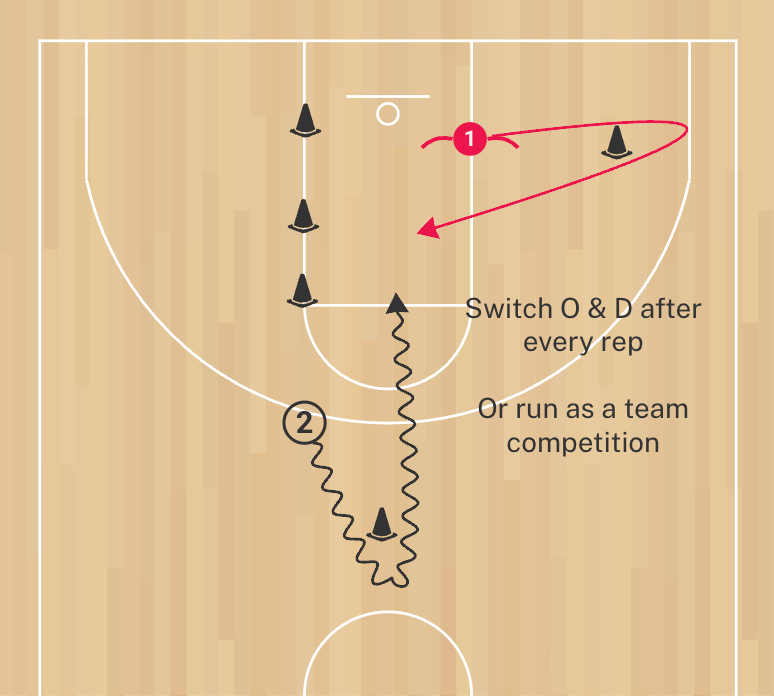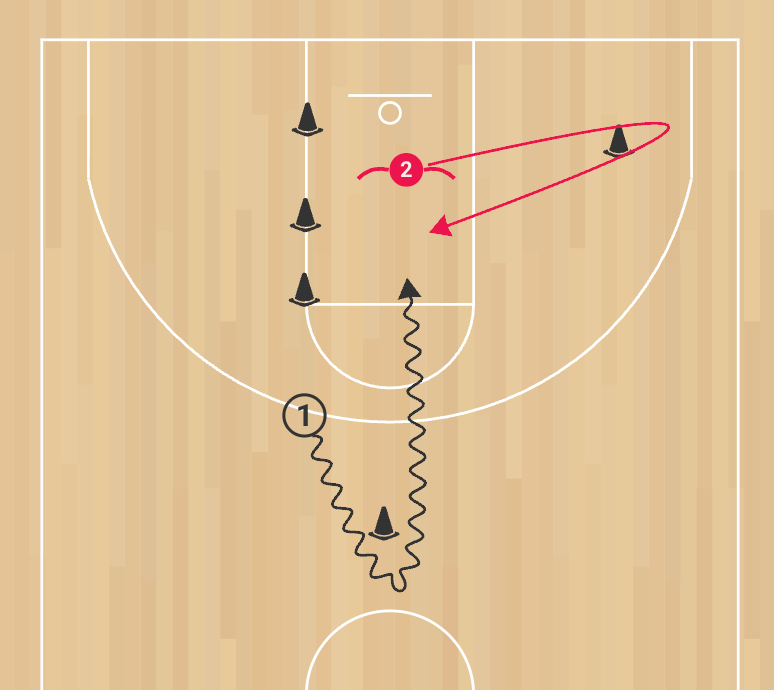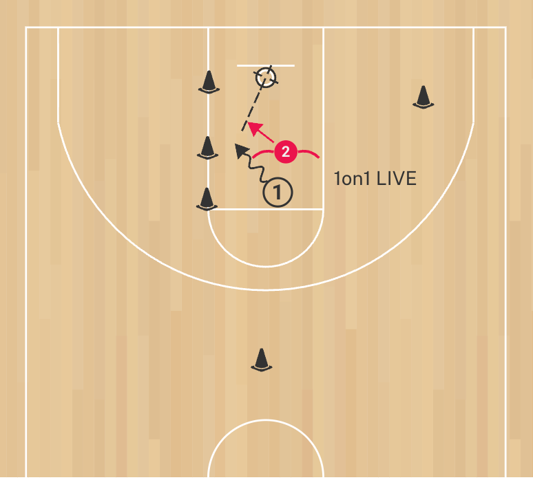 5. If the defense arrives in time, the drill becomes a live one-on-one with a two-dribble limit.