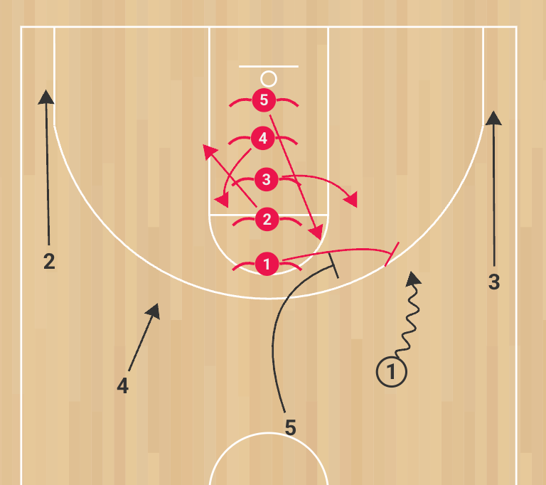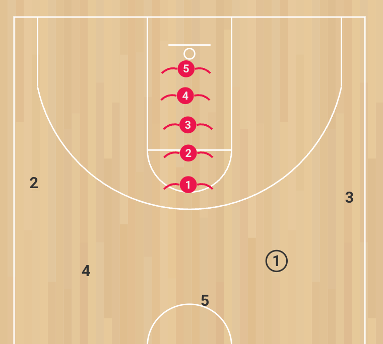 Coaches can dictate specific offensive sets or situations to simulate late-game scenarios. You can also apply restrictions like requiring the offense to finish with a ball screen, a post touch, or a particular entry to test defensive preparation. Progress by adding a 14-second clock to simulate short possessions or by giving the offense additional weapons such as one-dribble penetration or specific spacing concepts.