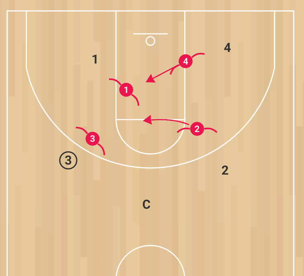 A defensive breakdown drill to teach negotiating pin-downs and back screens with strong communication, positioning, and screen defense technique.