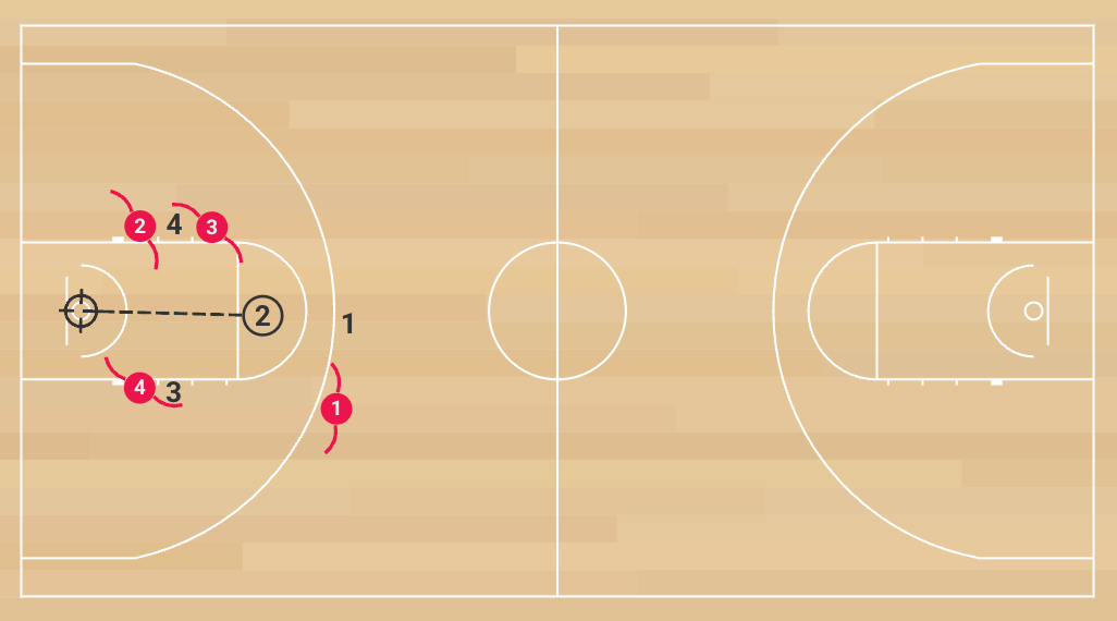 3. After the defensive possession is finished, the original offensive unit comes down the floor for one final offensive trip. This concludes the O-D-O cycle, after which the next four-man unit rotates into play.
