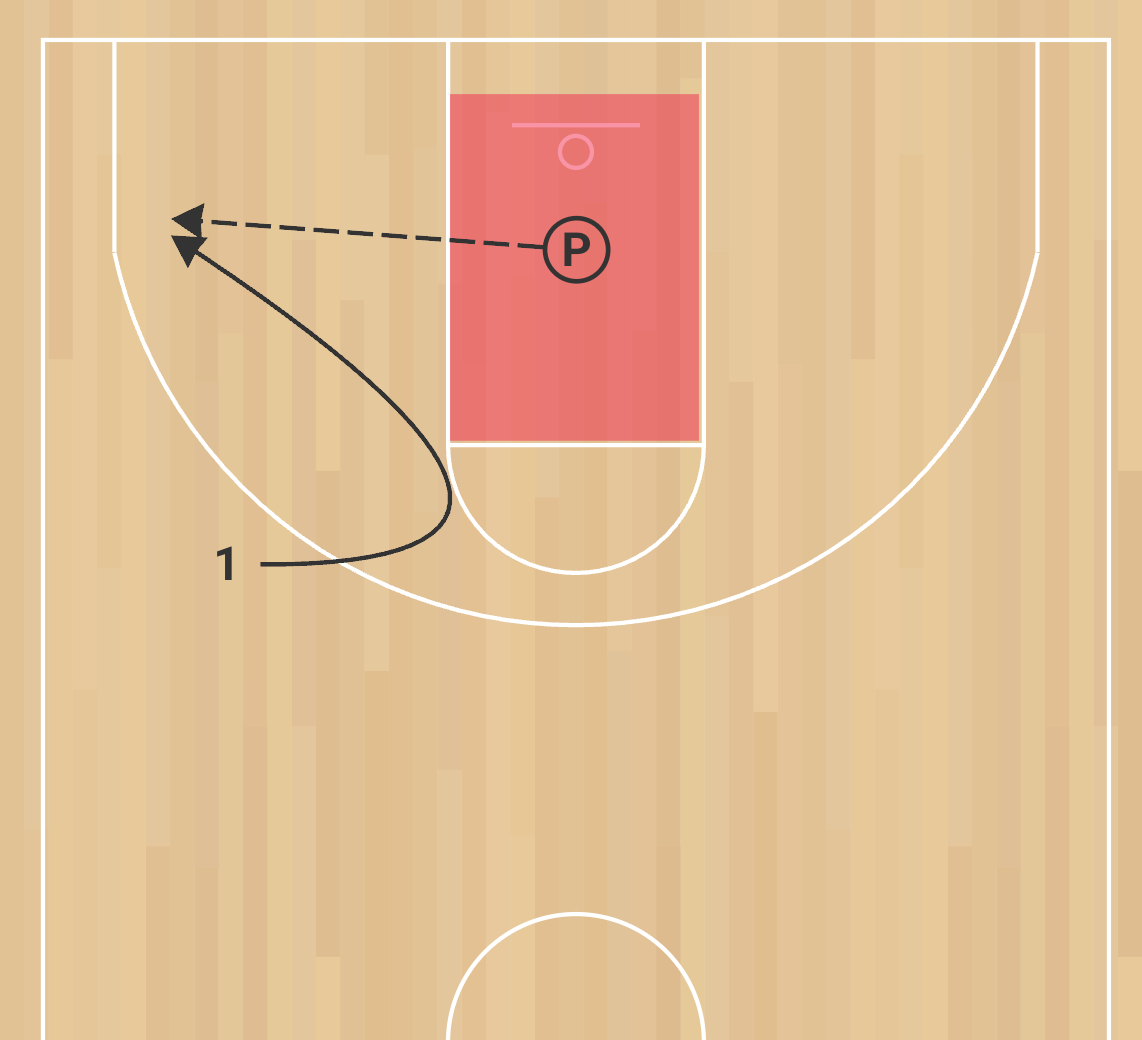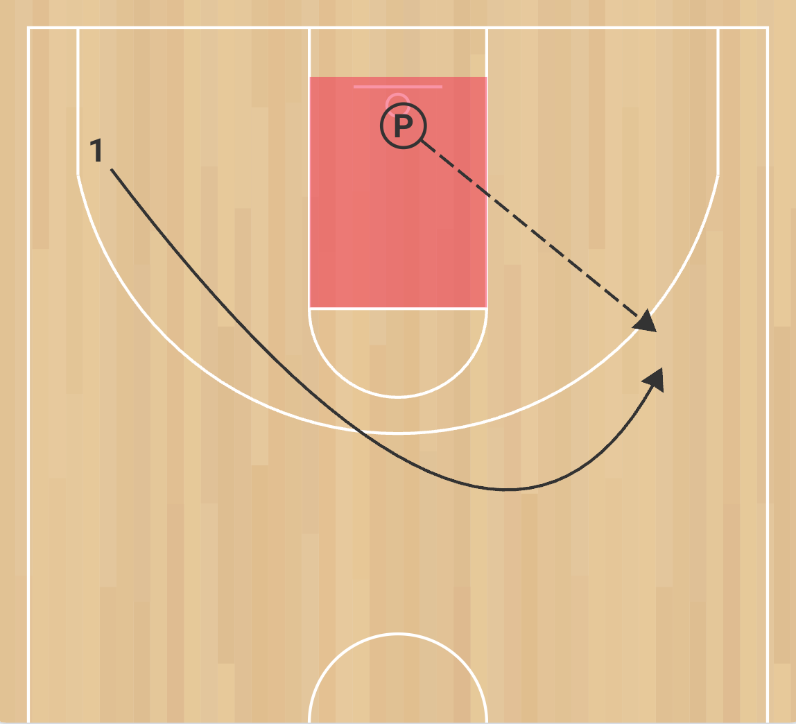 Made shot = 1 point for the shooter. Missed shot = 3 points for the pro. First to 21 points wins. Shooter loses if the pro reaches 21 before them. Drill can also be timed, e.g., three to five minutes, with the winner being whoever has more points at the horn.
