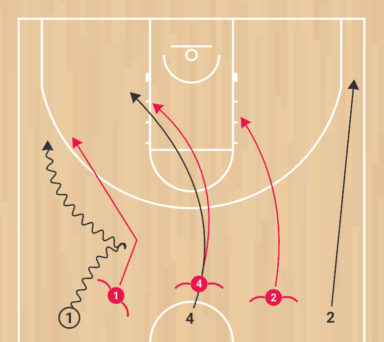 3. 2 sprints to the weak-side corner, establishing spacing and help-side balance.