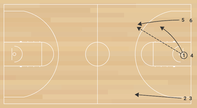 Form three lines along the baseline: two near the sidelines and one under the rim. The middle line holds the ball. On the coach’s first whistle, the first player from each line runs a three-man weave at a full sprint down the floor. Players must not anticipate passes—run through each catch at speed.