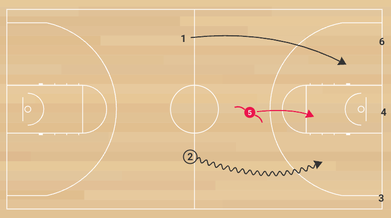 Weave into 2-on-1 Transition is a simple, game-like transition drill that links a full-speed three-man weave to an immediate 2-on-1. Offensively, it teaches running wide, attacking downhill, and finishing through contact in fewer than two passes. Defensively, it trains the lone defender to convert to the paint, stunt without overcommitting, take away the rim, and bait extra passes until help would realistically arrive.