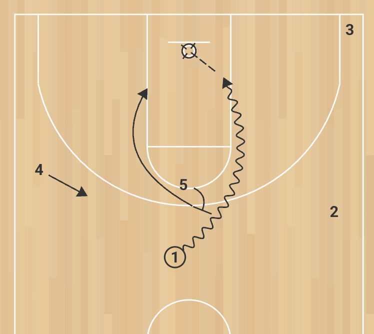1 attacks off 5’s hip with pace; read nail/low man early.