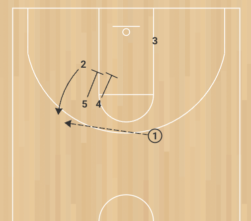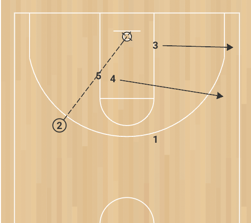 • 2 comes off a stagger from 5 and 4 to the arc for the catch-and-shoot three.