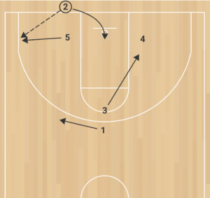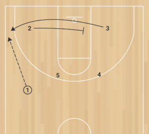 An after-timeout (ATO) play that uses a wing entry, twist screen, and elevator doors action to free a shooter for a clean three-point look.