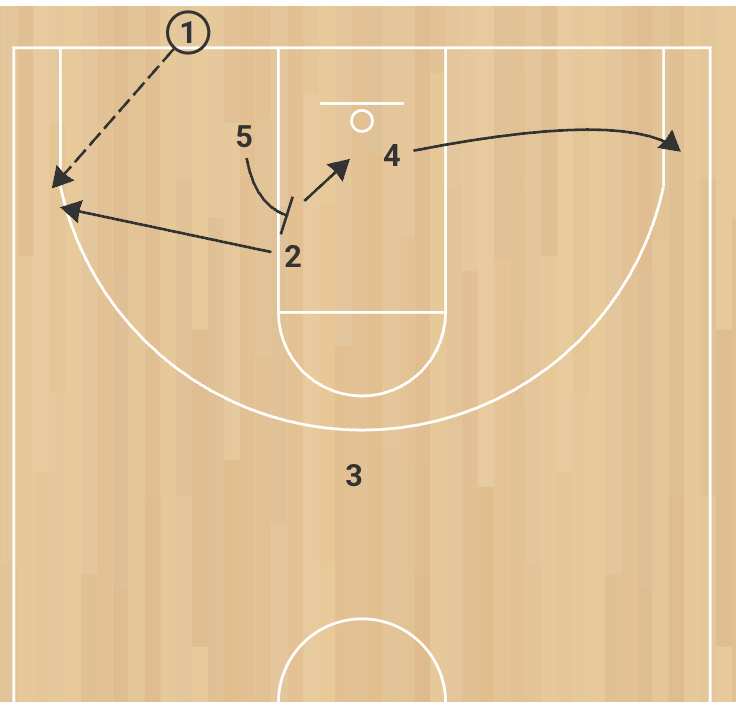 • 5 must set a headhunting screen for 2, punishing the defender.
