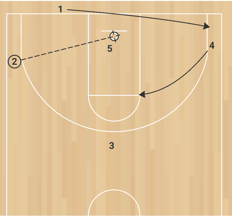 5 can slip to the rim if defenders switch the STS action. If the three is denied, 2 can immediately look inside to 5 sealing his man.