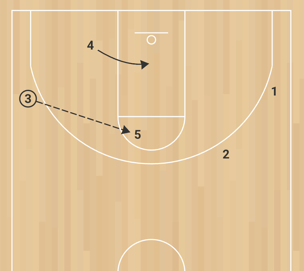 • 5 must dive hard to the rim on the entry to draw the middle defender.
