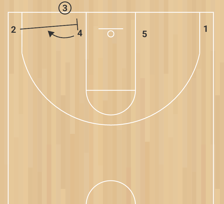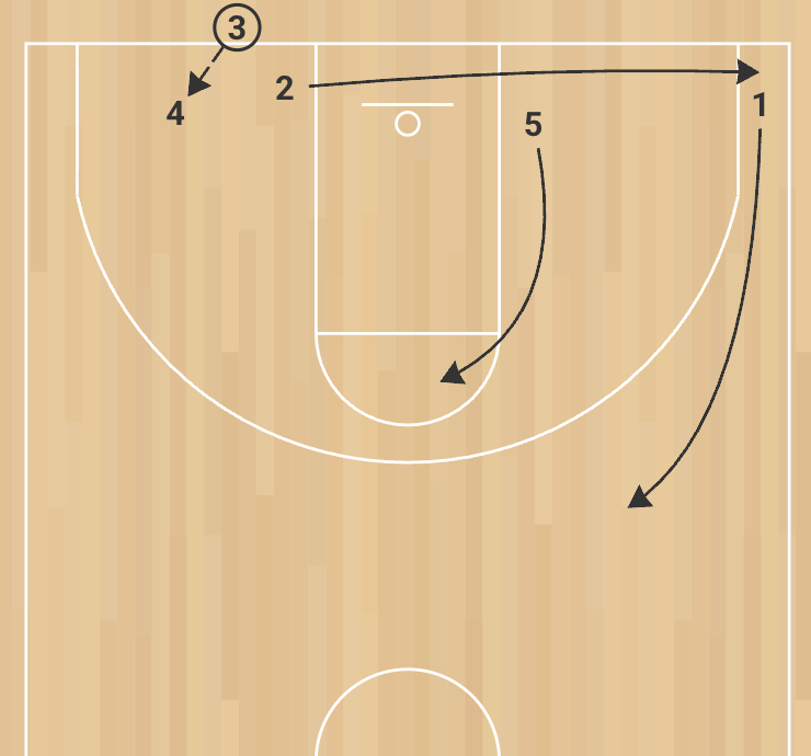 4 curls into the short corner and receives the pass from 3.