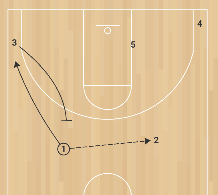 1 sets hammer screen for 3, who cuts to corner for open three.