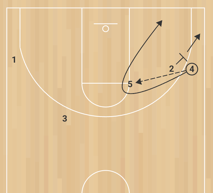 4 can reject the rub screen and attack immediately. If the corner three is denied, 5’s rim run becomes the primary look.