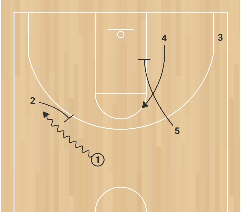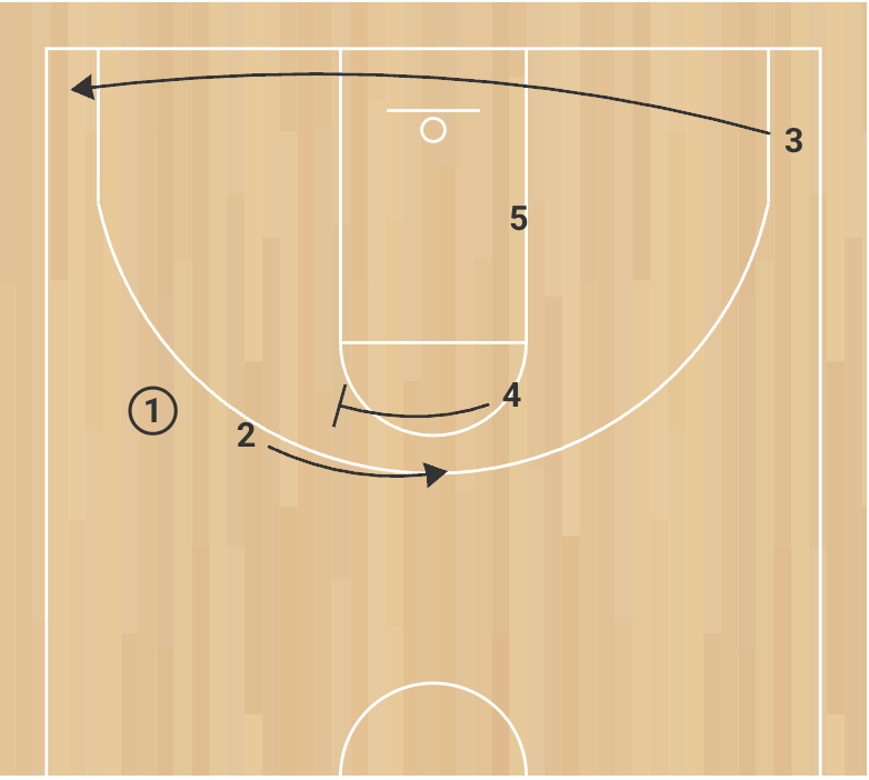 4 then sets a flare screen for 2, who drifts to the top of the key.