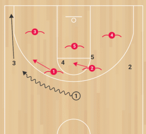 A zone quickhitter from the 41 series that uses double high-post screens to free the ball handler and create multiple scoring options.